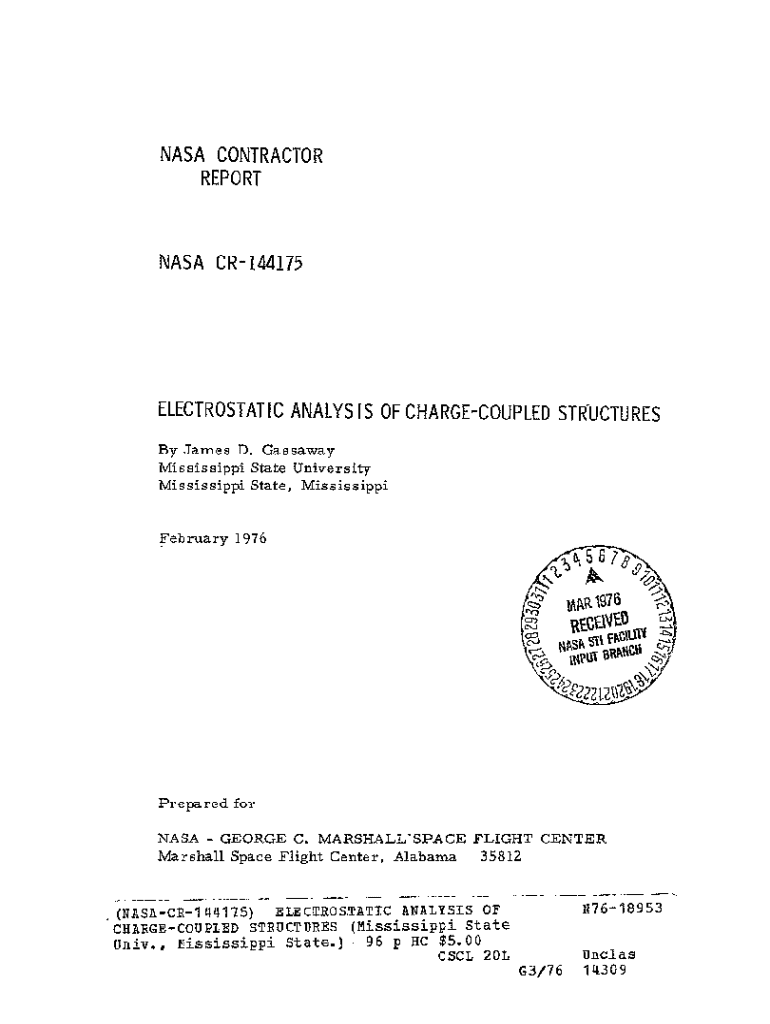 This report presents the results obtained in an investigation of charge-coupled shift register structures, detailing the electrostatic analysis using numerical solutions based on Gauss\'s law for