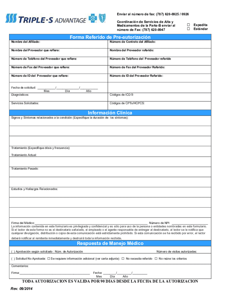 Envía la forma al departamento de autorización previa de la aseguradora correspondiente.