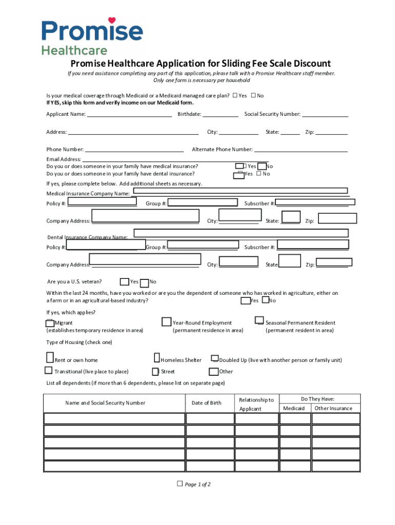 Obtener el gratis Promise Healthcare Application for Sliding Fee Scale Discount