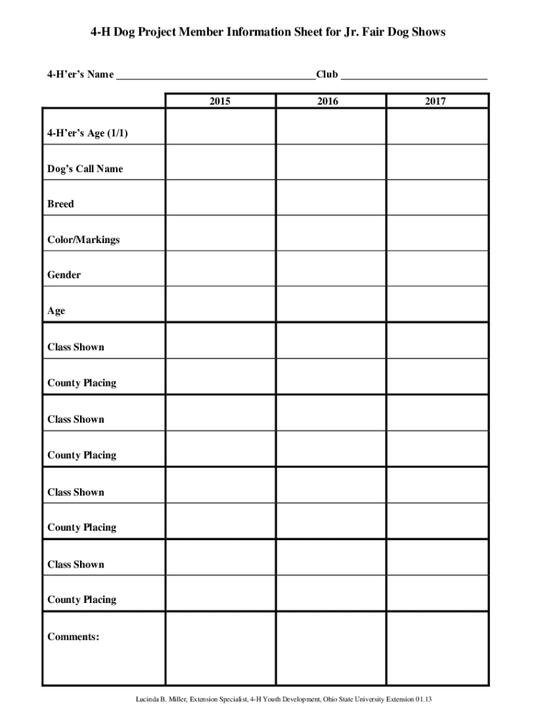 Get the free 4-h Dog Project Member Information Sheet for Jr. Fair Dog Shows - u osu