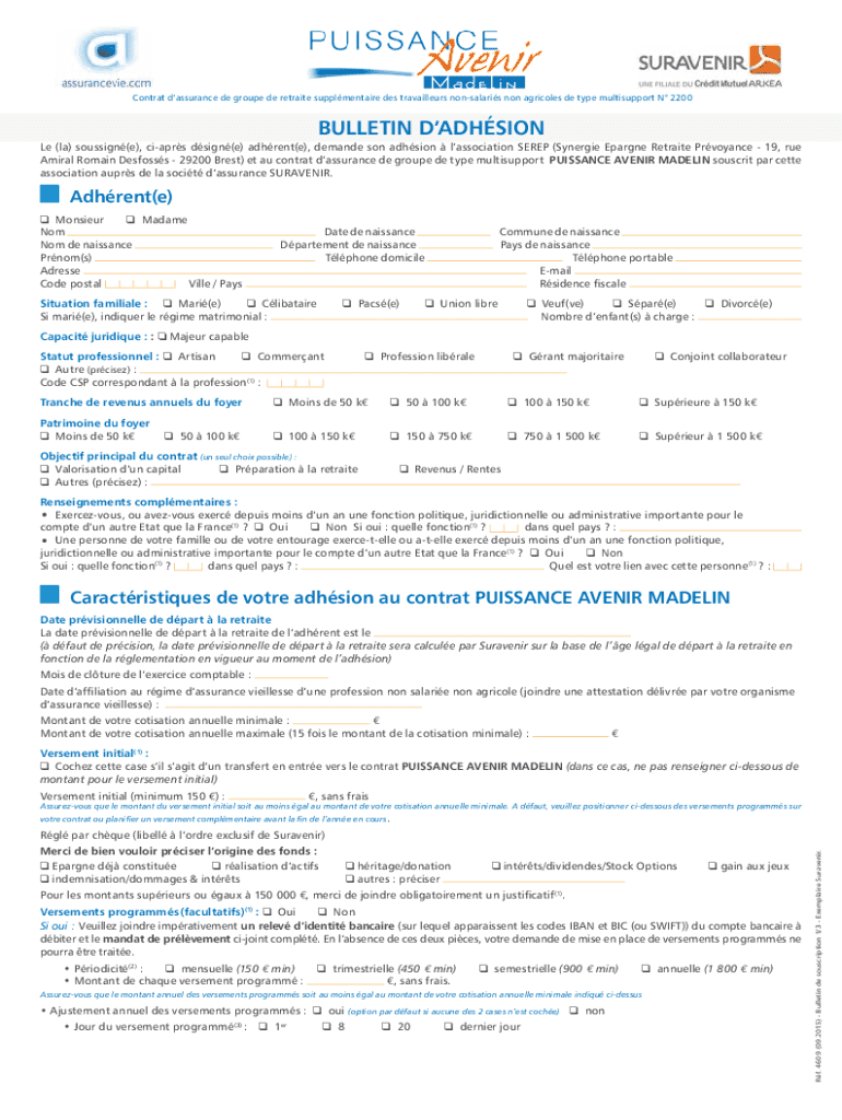 Ce document concerne l\'adhésion à un contrat d’assurance de groupe de retraite pour les travailleurs non-salariés non agricoles, spécifiquement de type multisupport Poussance Avenir Madelin,