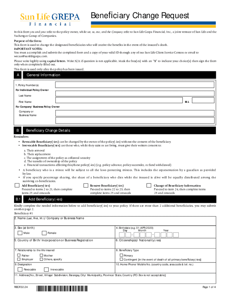 How to fill out beneficiary change request?