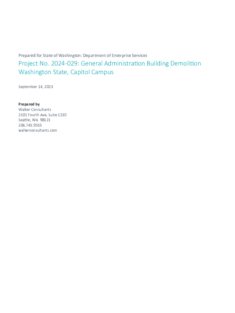 Prepared for State of Washington: Department of Enterprise ServicesProject No. 2024029: General Administration Building Demolition Washington State, Capitol Campus September 14, 2023Prepared by Walker