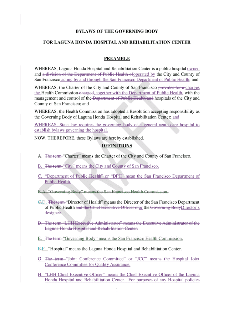 Get the free Bylaws of the Governing Body for Laguna Honda Hospital and Rehabilitation Center