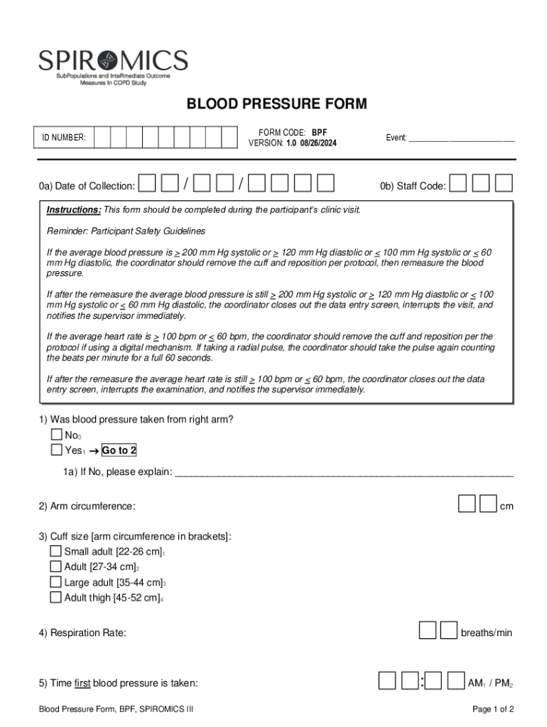 A blood pressure form is a document used to record an individual's blood pressure measurements, typically noting systolic and diastolic values.