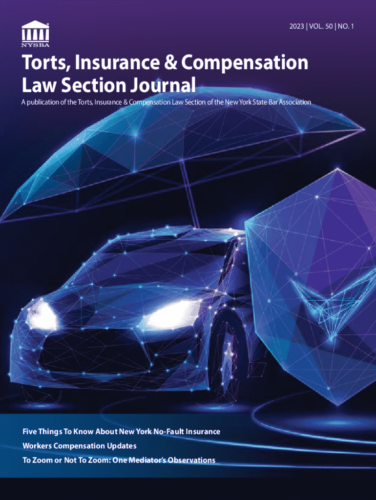 A publication of the Torts, Insurance & Compensation Law Section of the New York State Bar Association, featuring articles on New York No-Fault Insurance, Workers Compensation updates, and observations