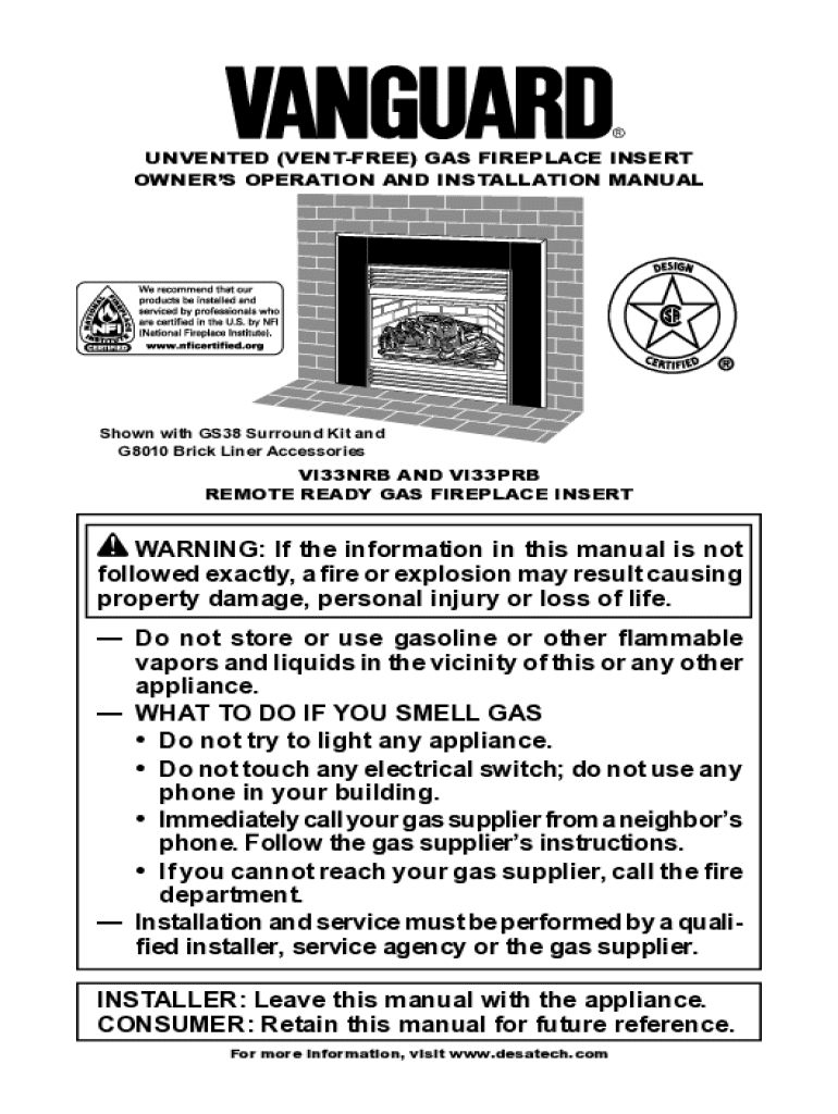 Get the free Unvented (vent-free) Gas Fireplace Insert Owner’s Operation and Installation Manual
