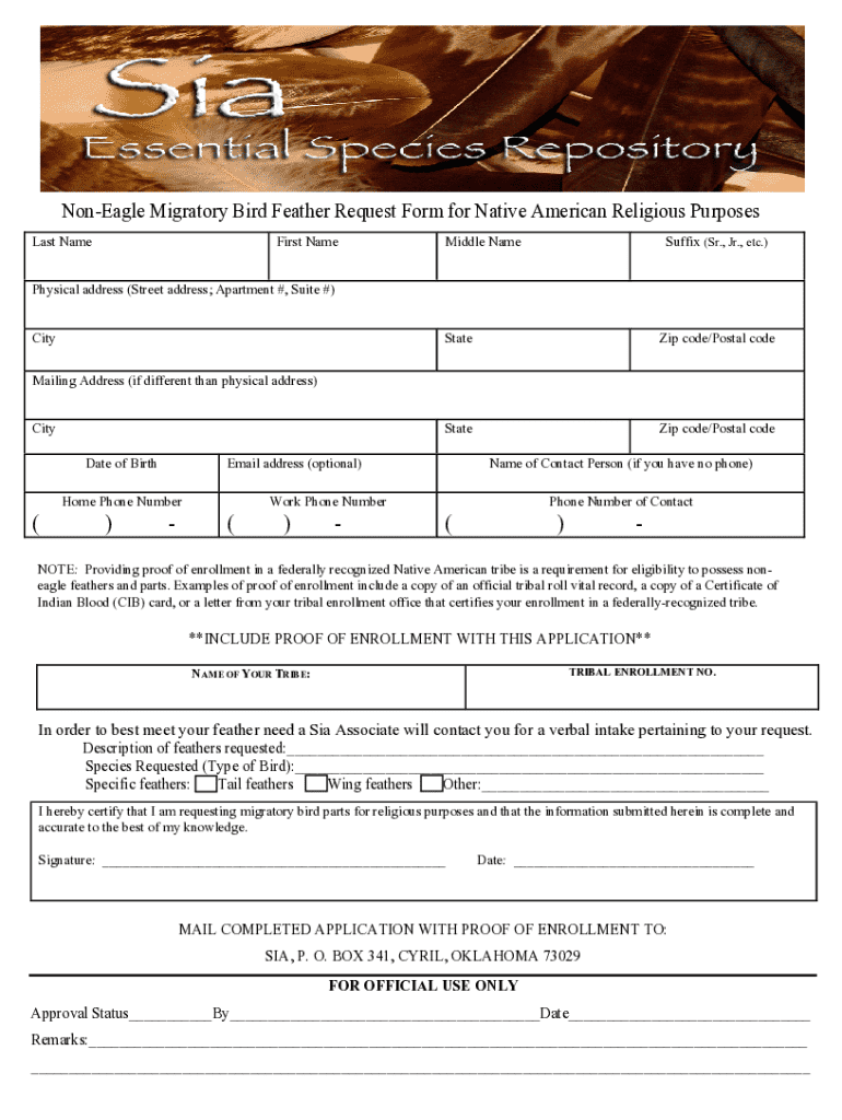Get the free Non-eagle Migratory Bird Feather Request Form