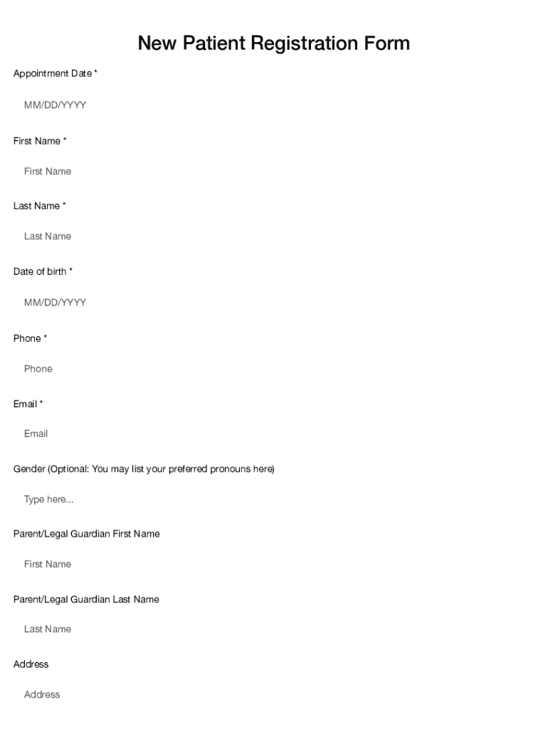 New Patient Registration Form is not the form you're looking for?Search for another form here.