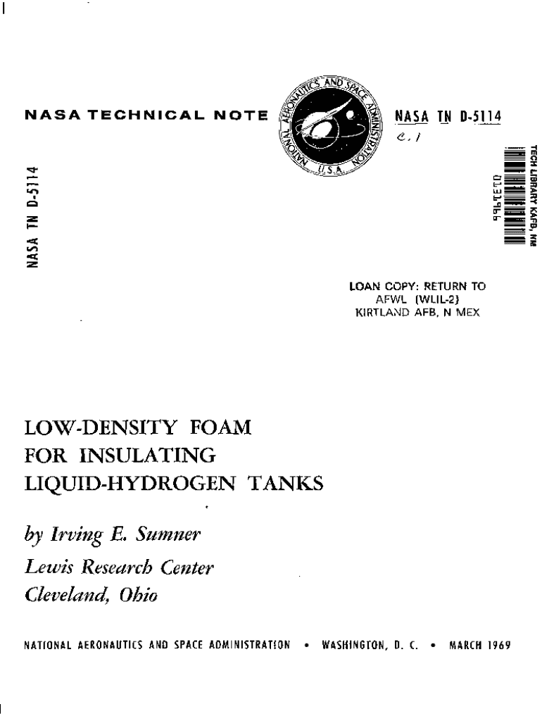 This document discusses the development and testing of a lightweight polyurethane foam insulation for liquid hydrogen tanks used in space vehicles. The foam was designed to be foamed in place, maintain