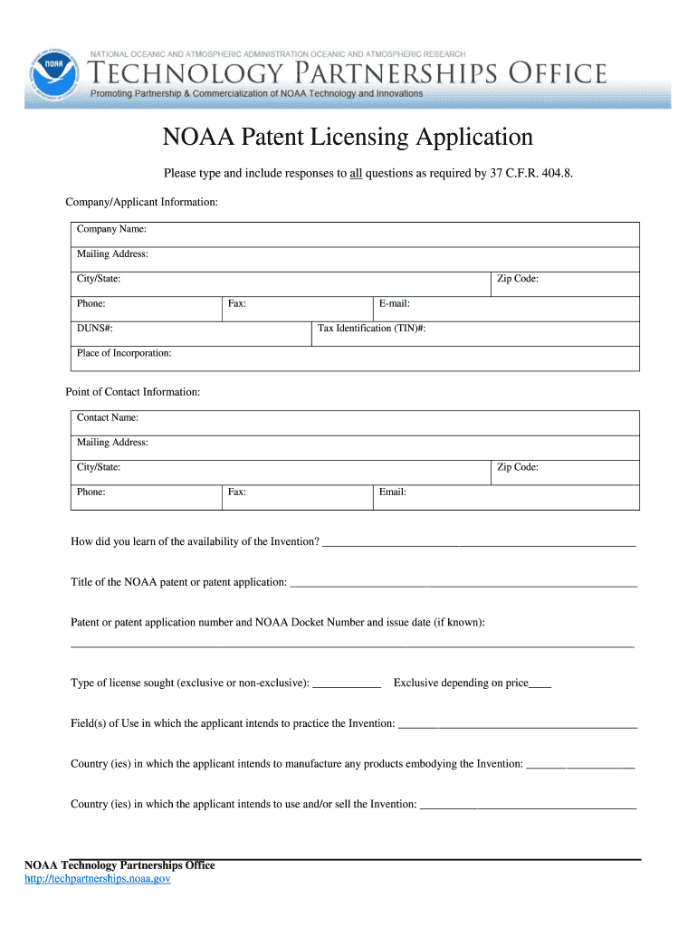 Get the free NOAA Licensing Application Form - NOAA Technology Partnerships ... - techpartnership...