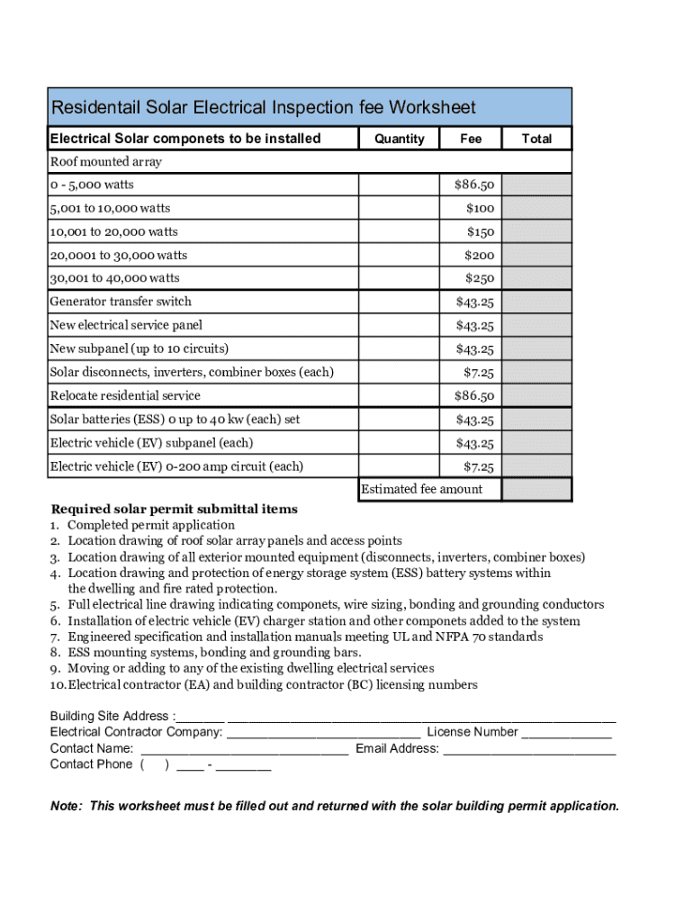 Get the free Residential Solar Electrical Inspection Fee Worksheet