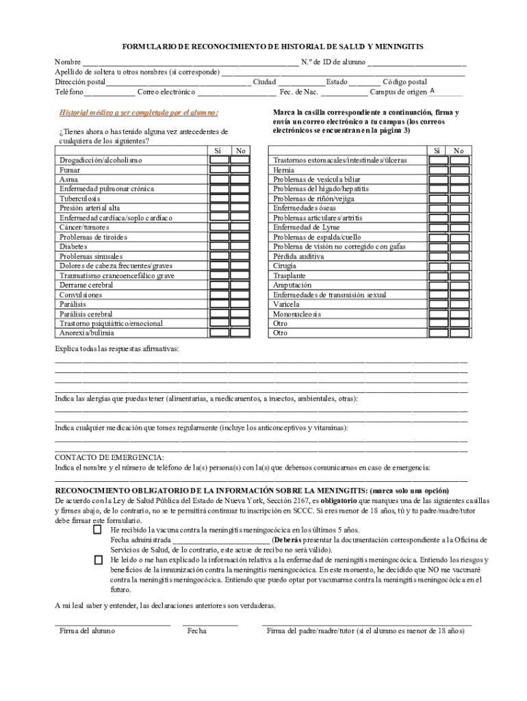 Obtener el gratis Formulario De Reconocimiento De Historial De Salud Y Meningitis