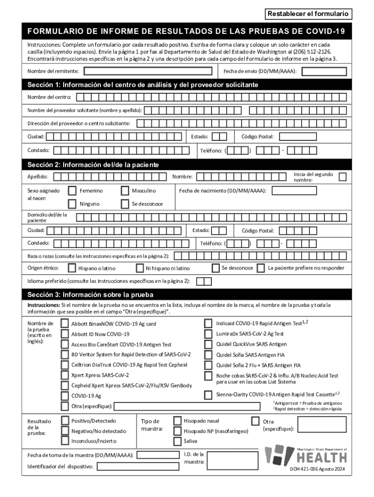 Obtener el gratis Formulario De Informe De Resultados De Las Pruebas De Covid-19 - doh wa