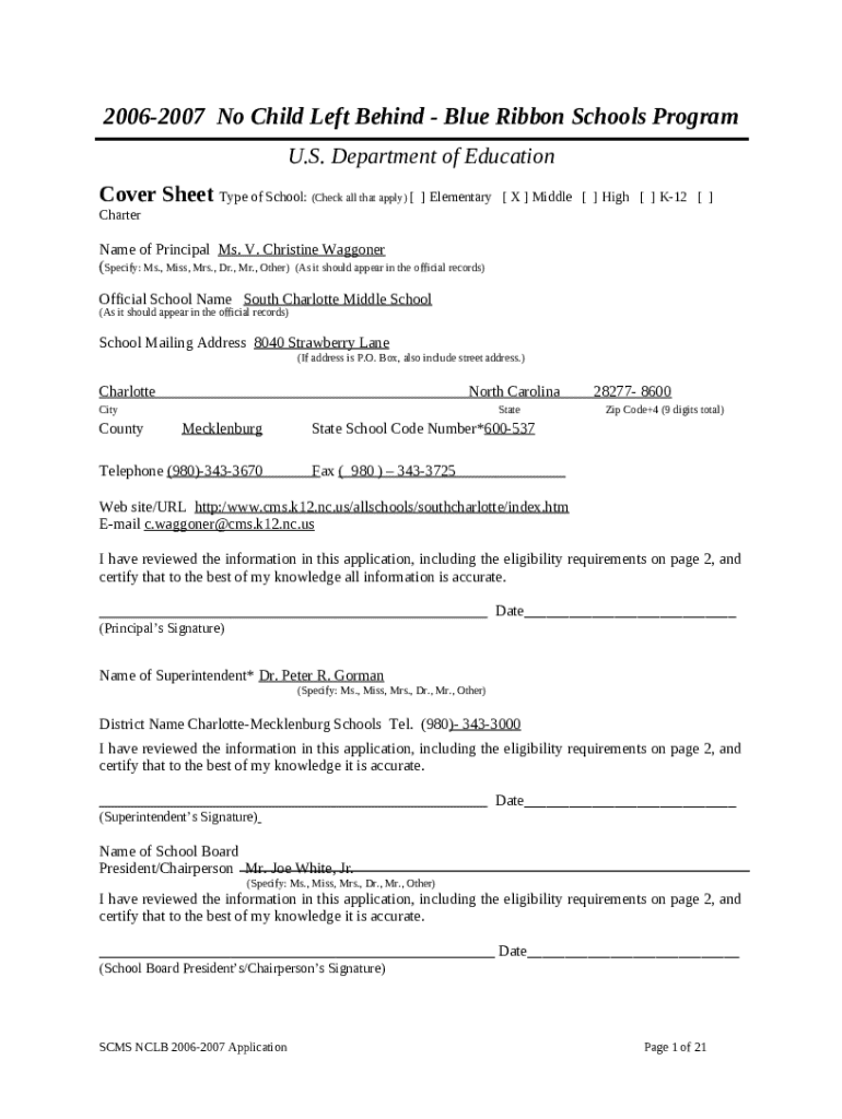 Instructions for the No Child Left Behind - Blue Ribbon Schools Program form