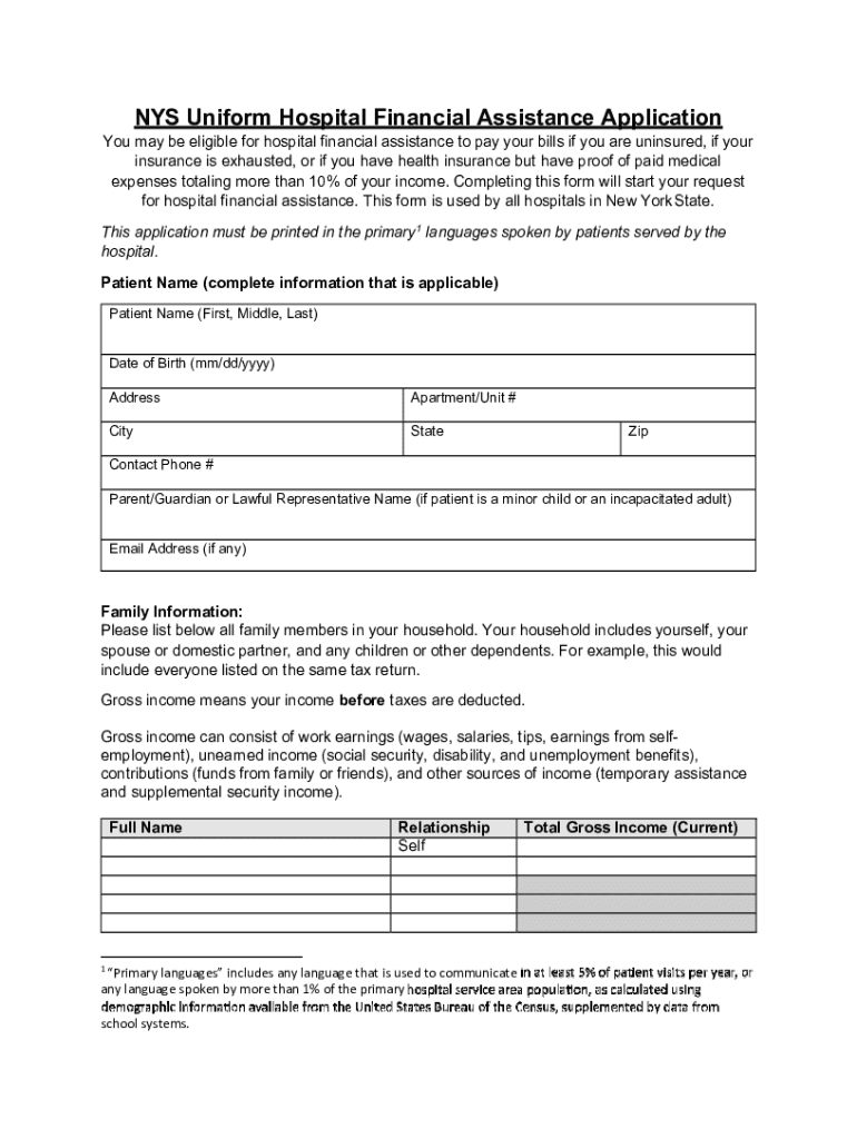 Get the free Nys Uniform Hospital Financial Assistance Application