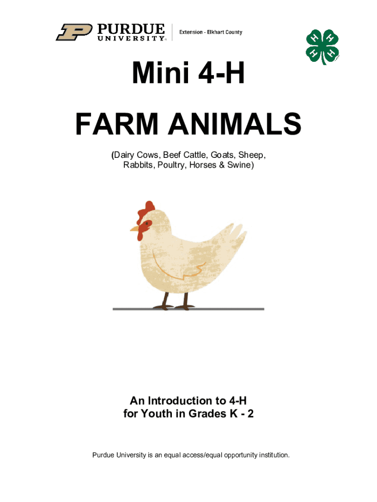 Get the free Elkhart County Mini 4-h Farm Animals Manual - extension purdue