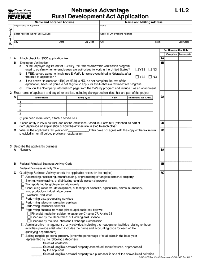 This application form is intended for businesses seeking to apply for tax incentives under the Nebraska Advantage Rural Development Act. It requires applicants to provide detailed information about
