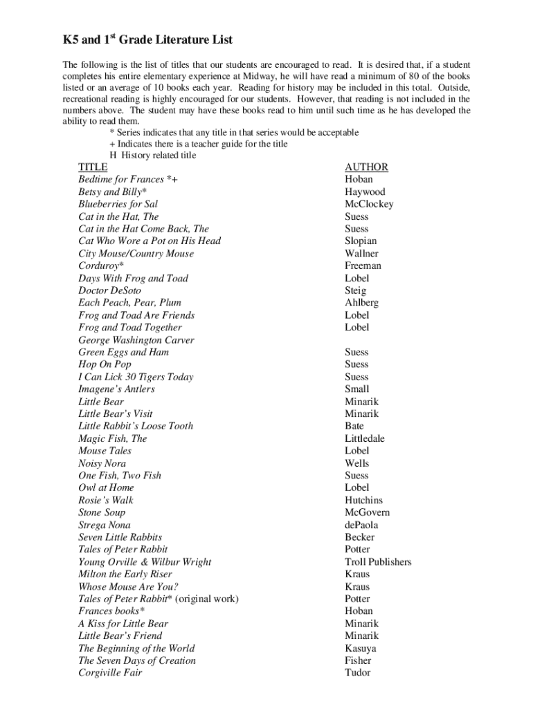 Get the free K5 and 1st Grade Literature List
