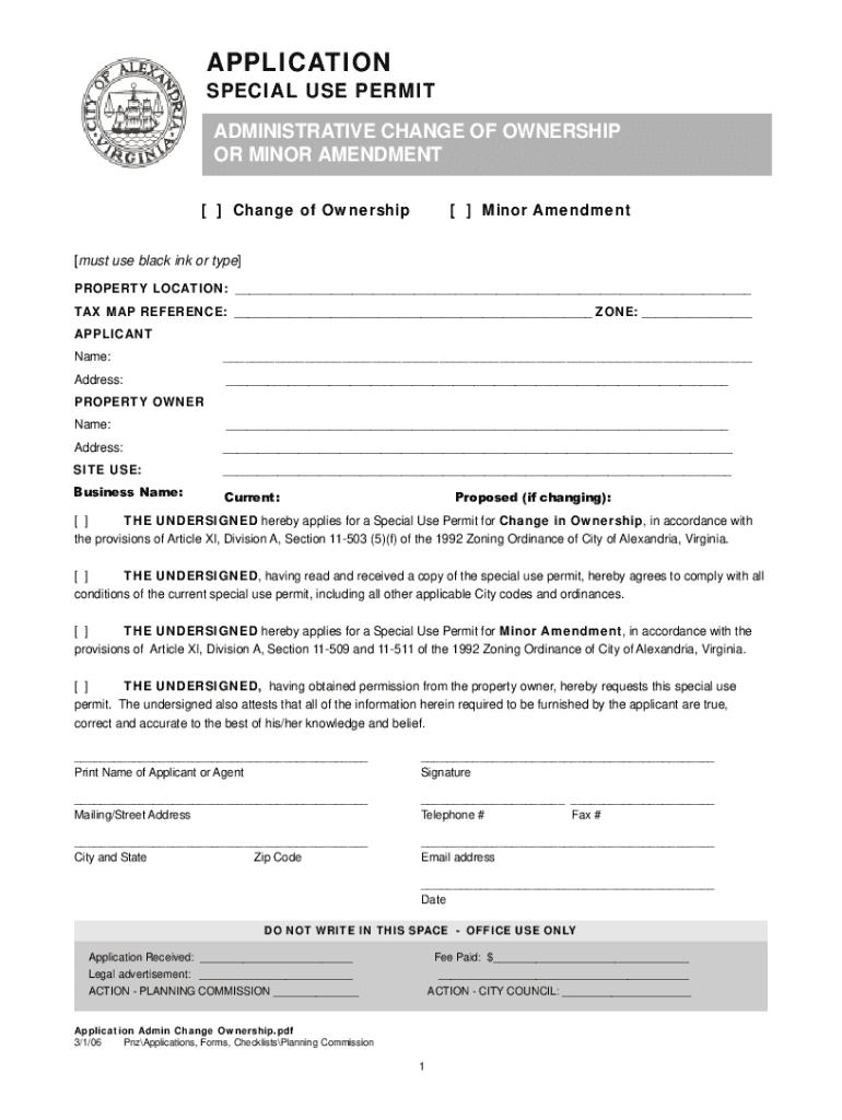 VA Administrative Change of Ownership or Minor Amendment - City of Alexandria 2006-2026 free printable template