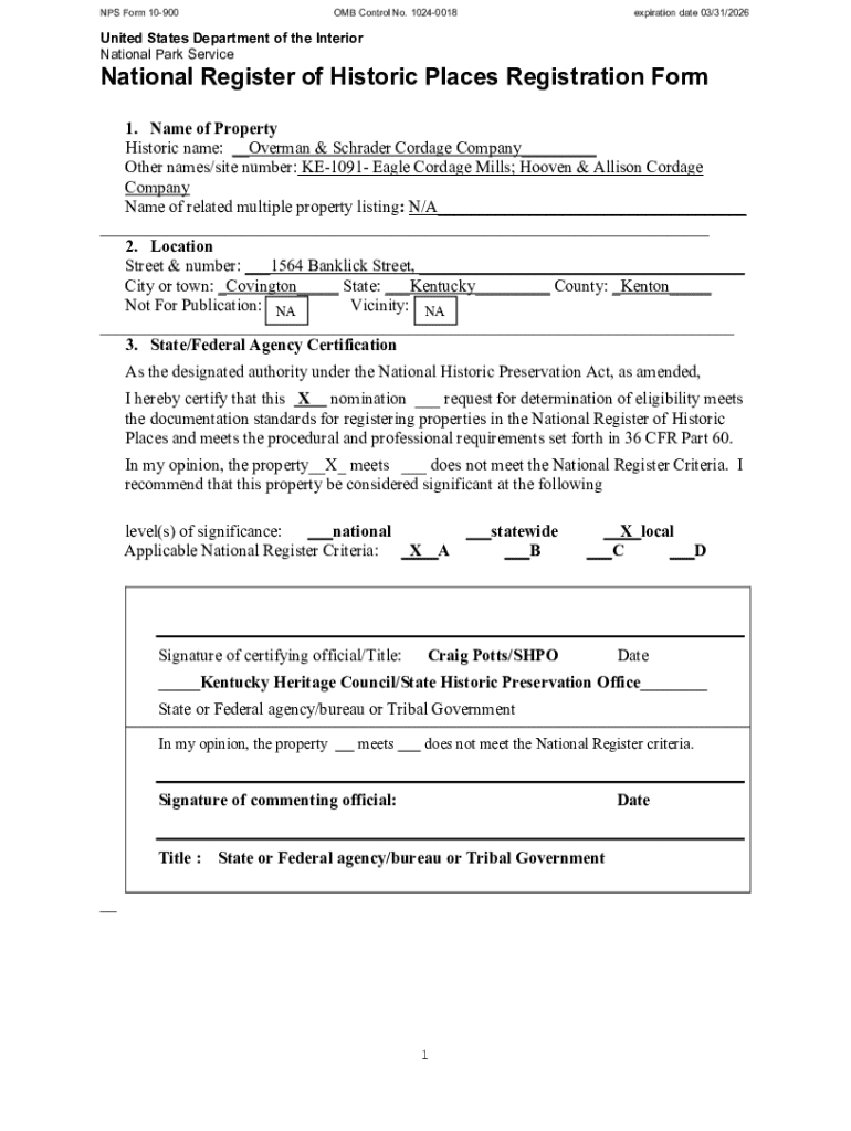 Get the free Nps Form 10-900 - heritage ky