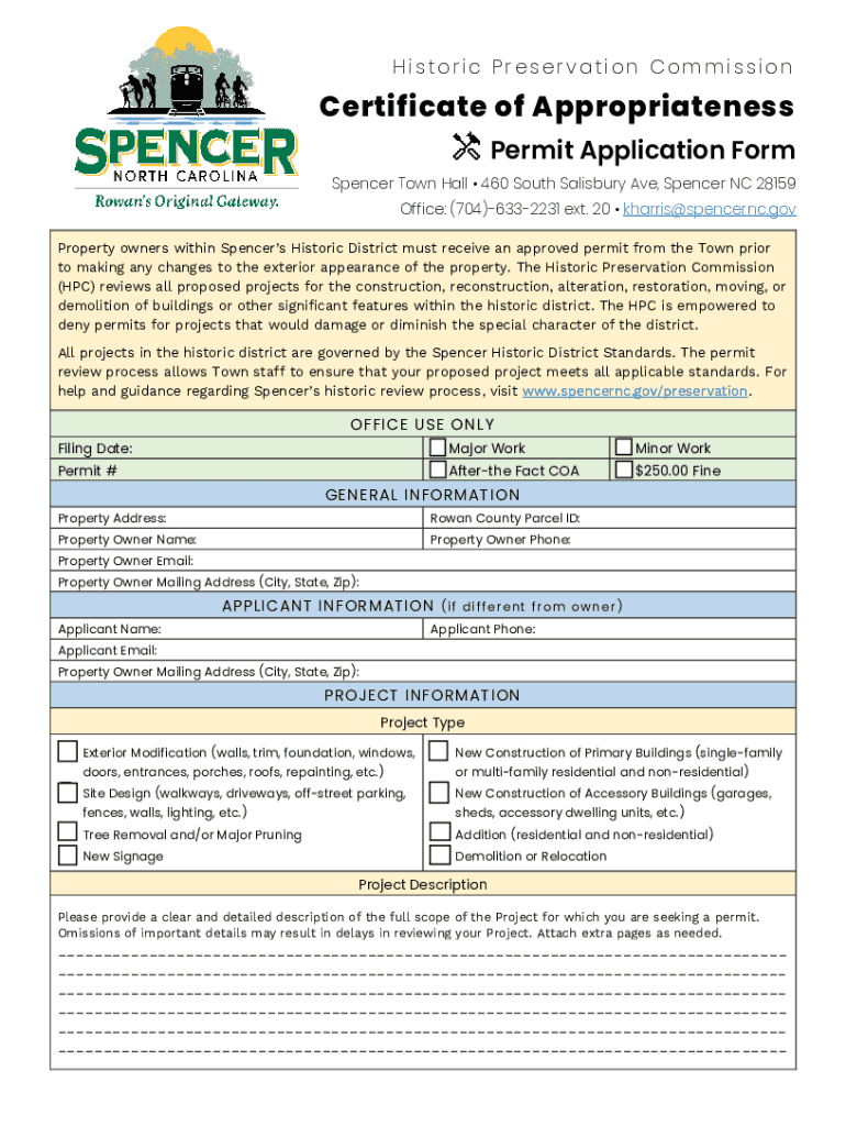Get the free Certificate of Appropriateness Permit Application Form