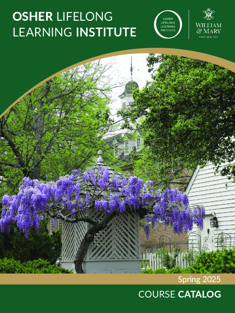 This catalog details the courses offered for Spring 2025 at the Osher Lifelong Learning Institute, providing information on various subjects including history, languages, arts, wellness, and more.