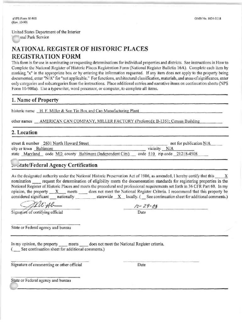 This form is for use in nominating or requesting determinations for individual properties and districts associated with historic significance, including their location, functions, architectural classification,