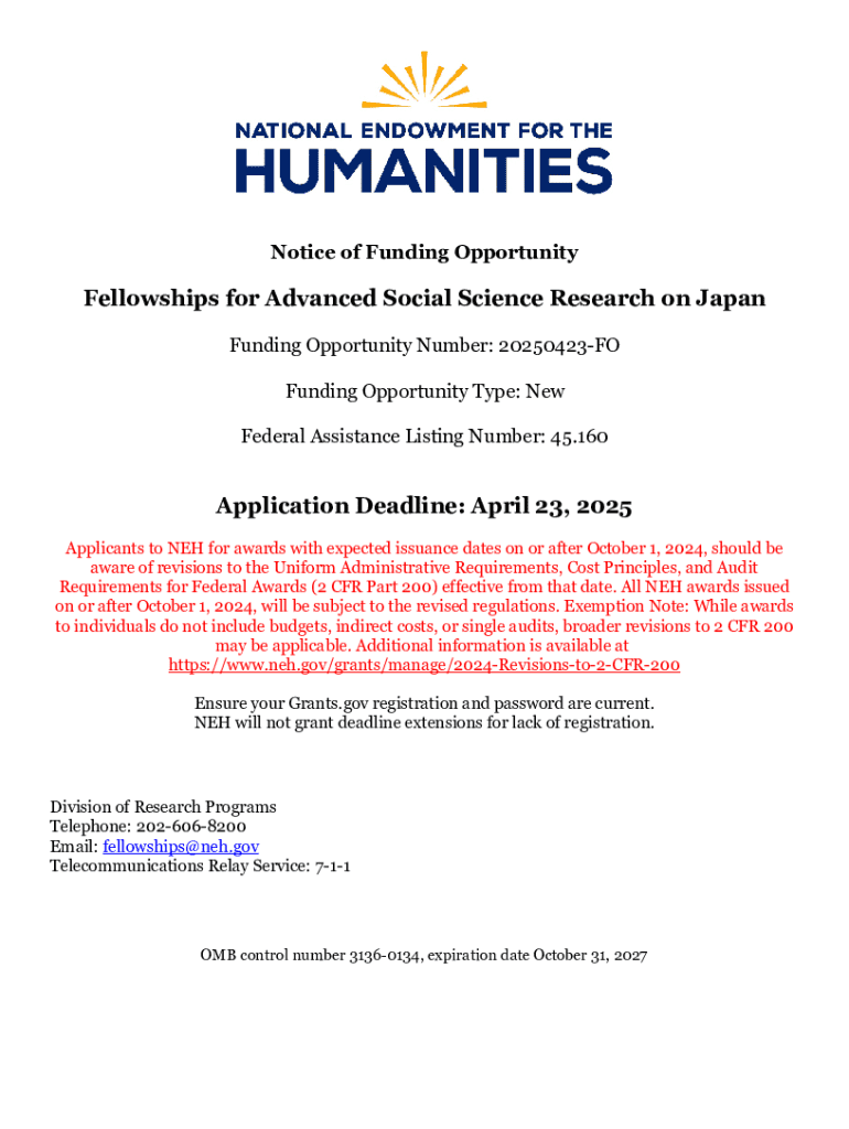 Get the free Notice of Funding Opportunity