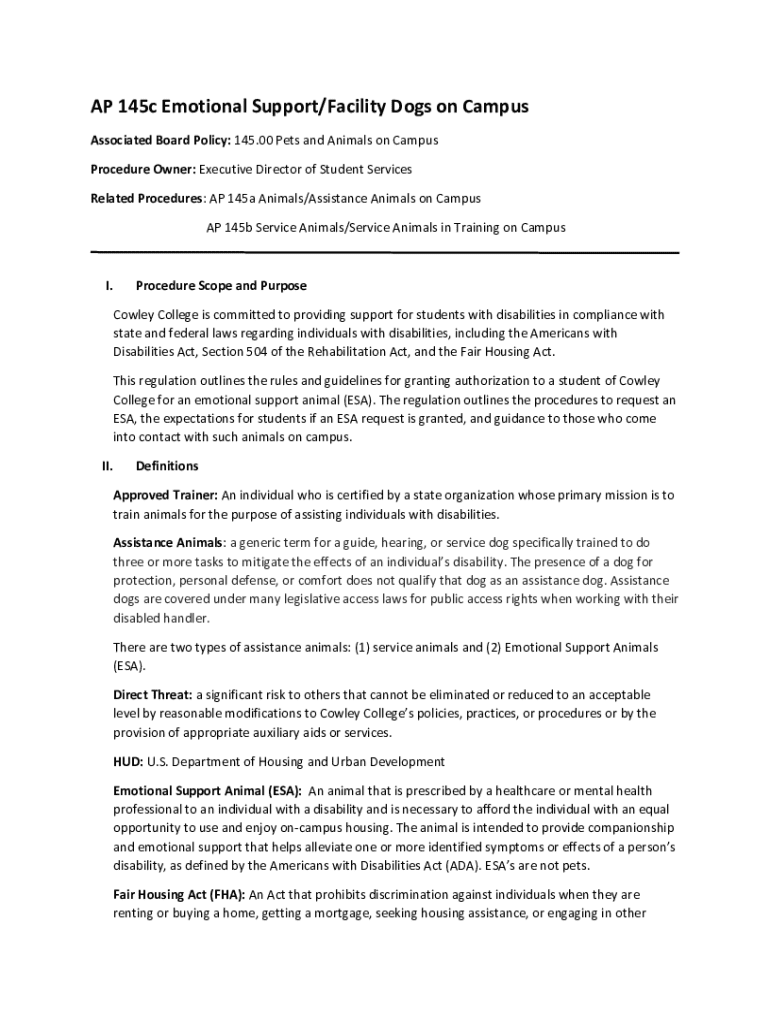 Get the free Ap 145c Emotional Support/facility Dogs on Campus