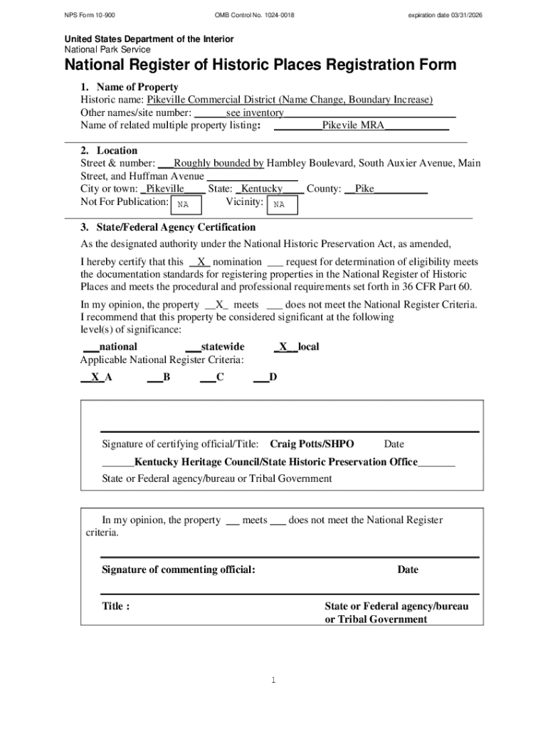 Get the free Nps Form 10-900 - heritage ky