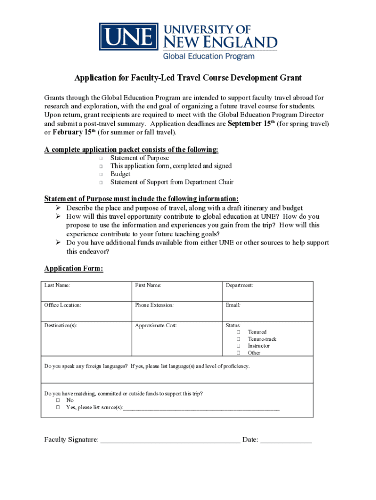 Get the free Application for Faculty-led Travel Course Development Grant