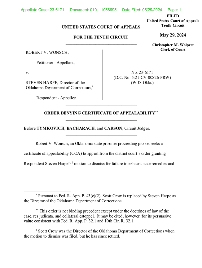 Appellate Case: 236171Document: 010111056695Date Filed: 05/29/2024UNITED STATES COURT OF APPEALSPage: 1FILED United States Court of Appeals Tenth CircuitFOR THE TENTH CIRCUIT ___ ROBERT V. WONSCH,May