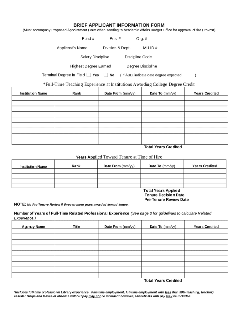How to fill Brief Applicant Ination word template