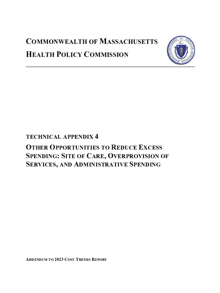 This appendix details the Health Policy Commission\'s chapter on various strategies to mitigate excessive spending in healthcare, focusing on site of care analysis, overprovision of services, and