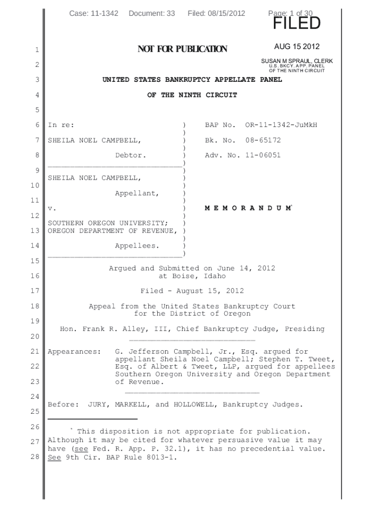 This memorandum involves the appeal of Sheila Noel Campbell regarding the nondischargeability of her educational debt owed to Southern Oregon University and the Oregon Department of Revenue following
