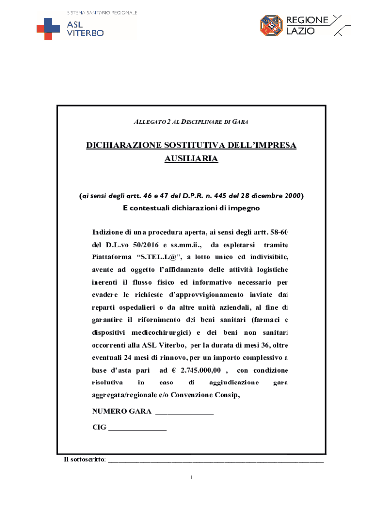 Ottieni il gratuito Dichiarazione Sostitutiva Dell’impresa Ausiliaria