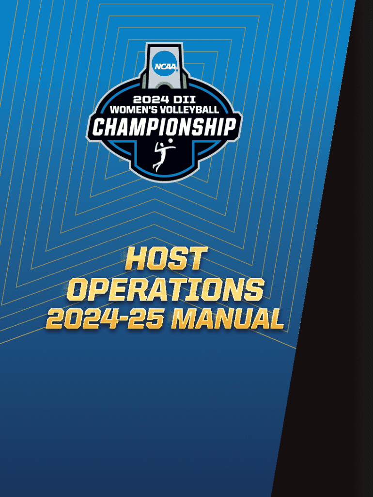 This manual outlines the responsibilities of an institution/conference hosting this round of an NCAA championship. It includes sections on alcohol policies, competition site requirements, and detailed