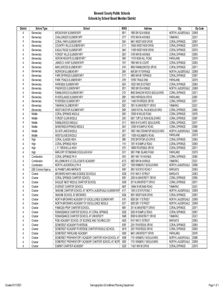 Get the free Broward County Public Schools - Schools by School Board Member District