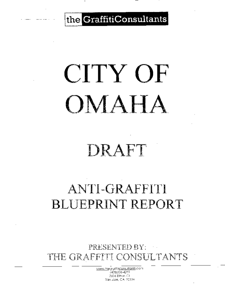 This draft report outlines a comprehensive anti-graffiti blueprint for the city of Omaha, including recommendations for addressing graffiti issues through collaboration with residents, organizations,