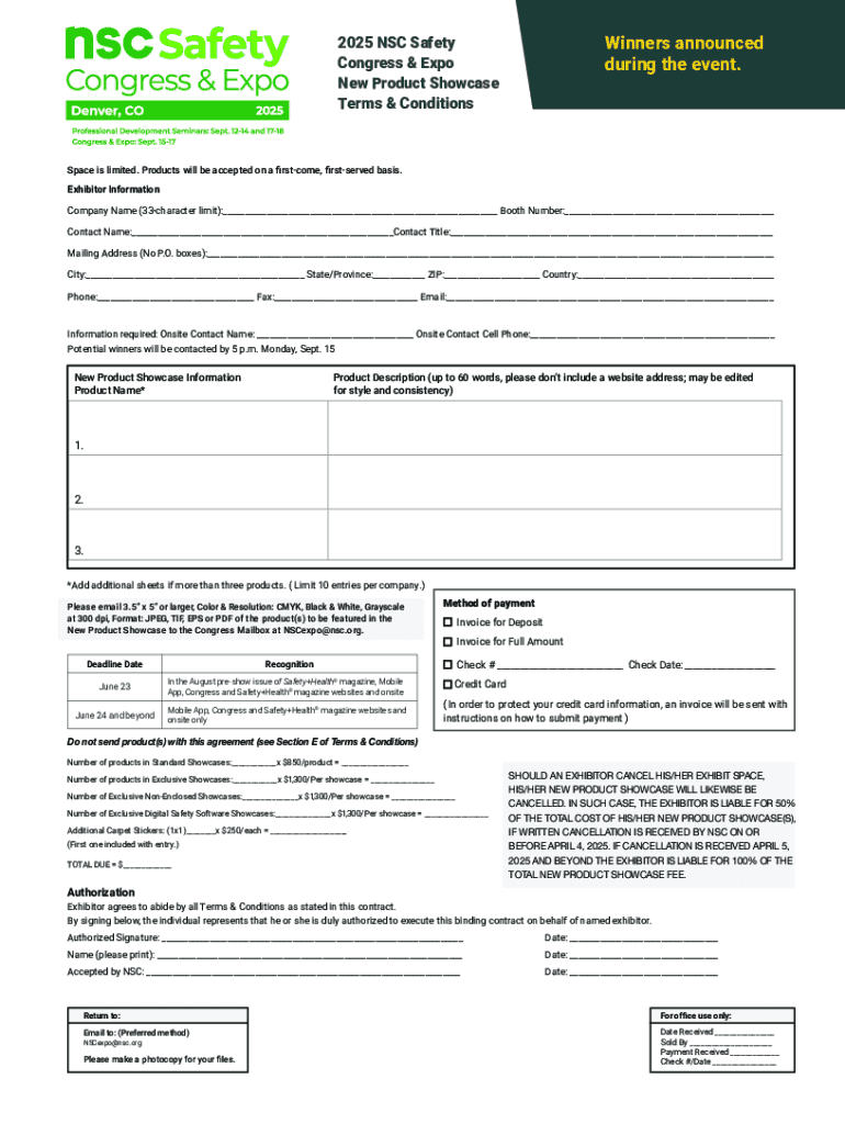Get the free 2025 Nsc Safety Congress & Expo New Product Showcase - congress nsc