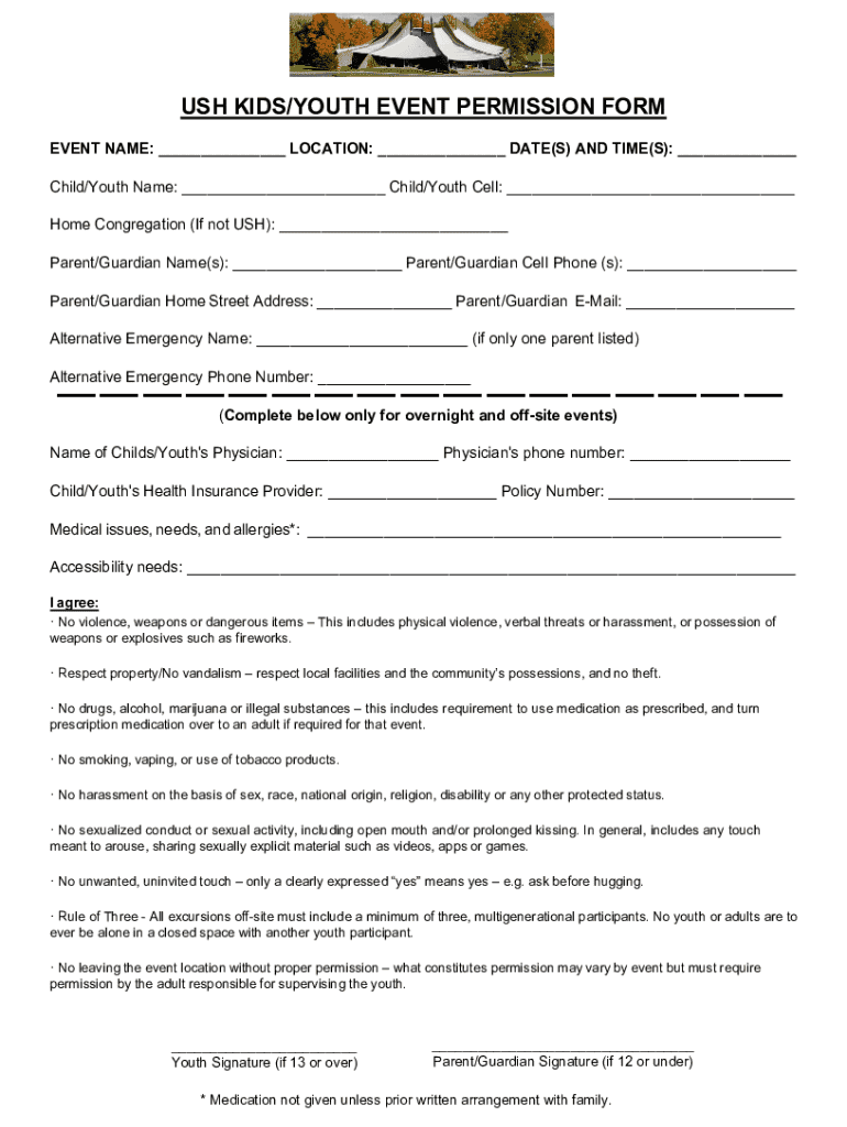 Get the free Ush Kids/youth Event Permission Form