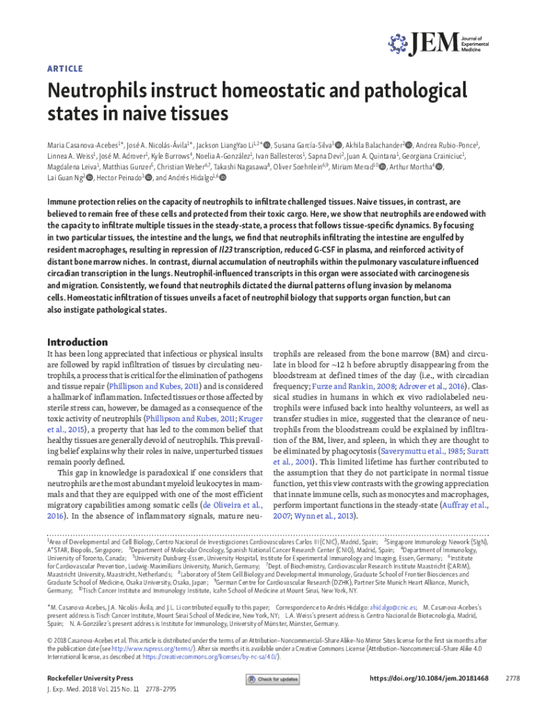 ARTICLENeutrophils instruct homeostatic and pathological states in naive tissues Maria CasanovaAcebes1*, Jos A. Nicolsvila1*, Jackson LiangYao Li1,2*, Susana GarcaSilva3, Akhila Balachander2, Andrea