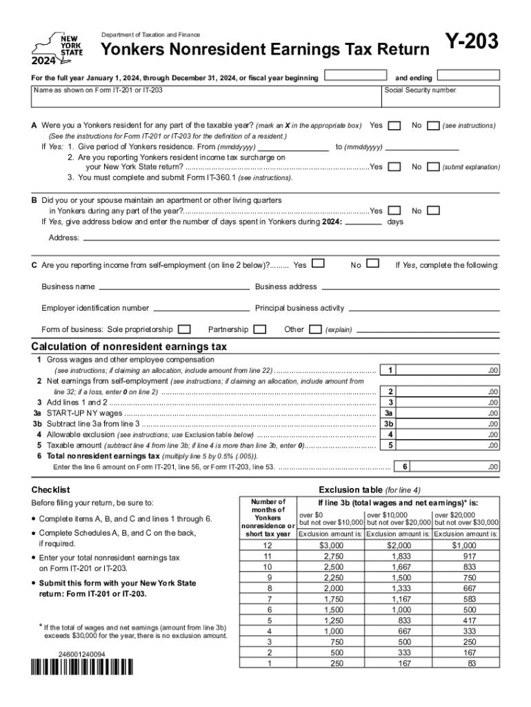 This form is used by nonresident individuals who earn income in Yonkers to calculate and report their Yonkers earnings tax for the fiscal year 2024.