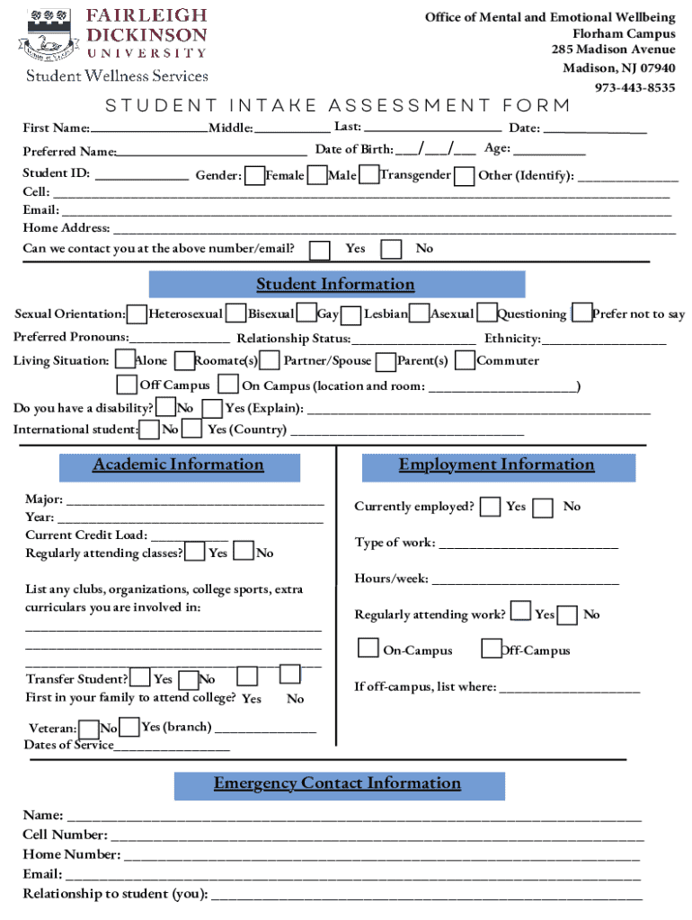 How to fill out student intake assessment form?