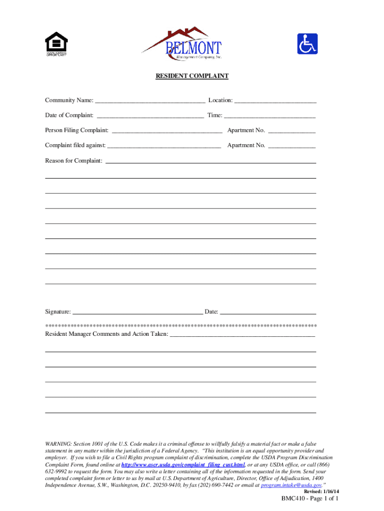 Get the free Resident Complaint