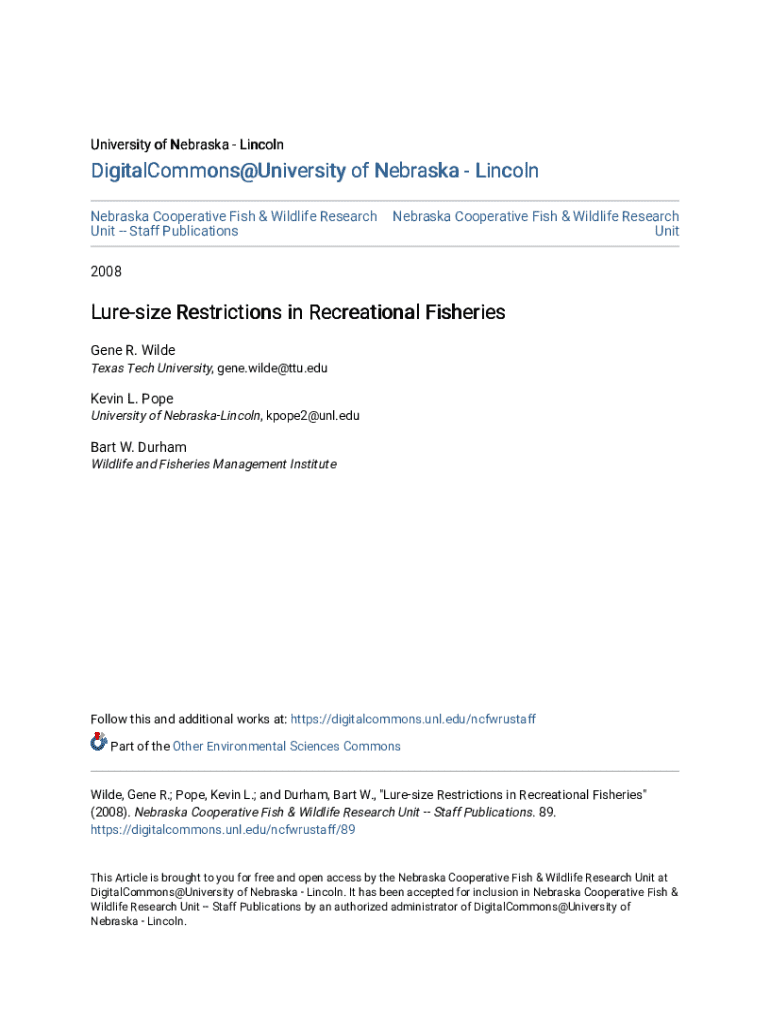 Get the free Nebraska Cooperative Fish & Wildlife Research - digitalcommons unl