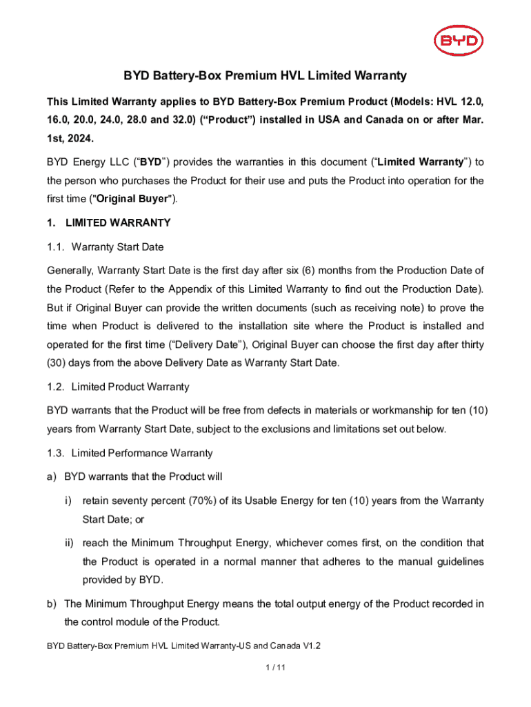 Get the free Byd Battery-box Premium Hvl Limited Warranty