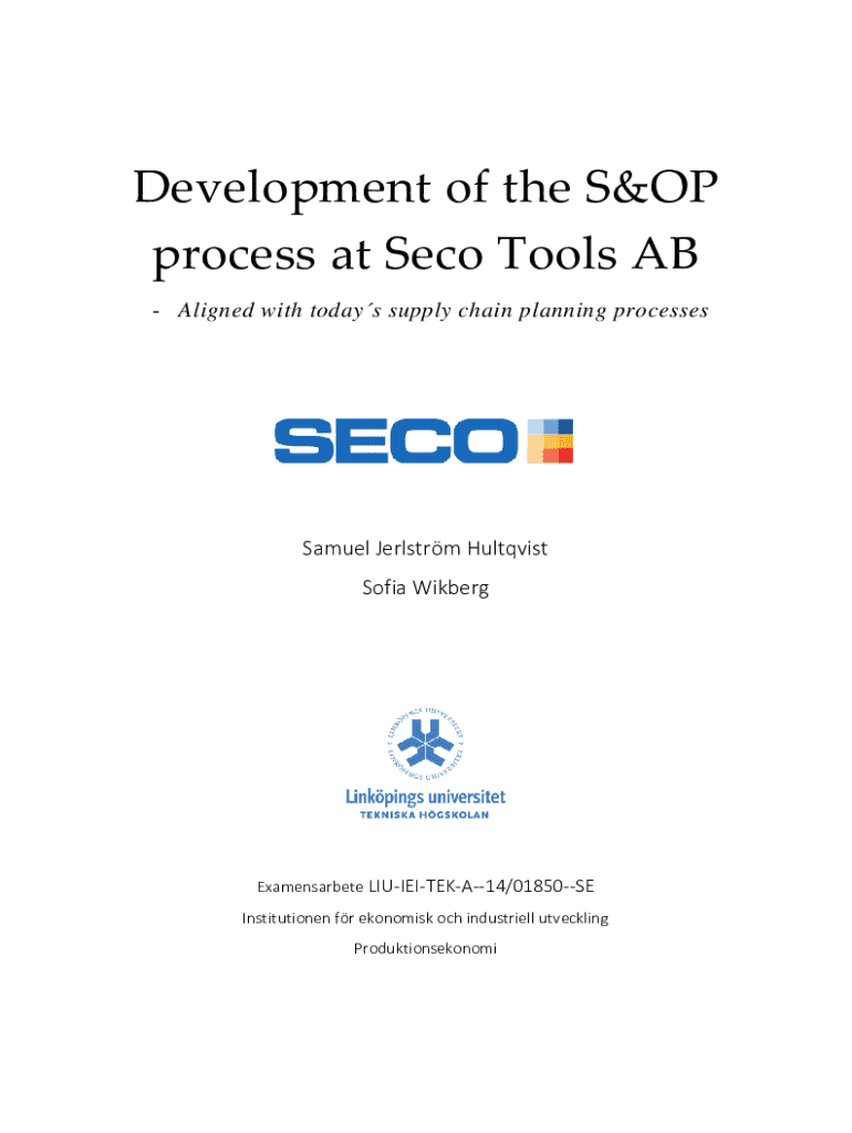 Development of the S&OP process at Seco Tools AB Aligned with todays supply chain planning processesSamuel Jerlstrm Hultqvist Sofia WikbergExamensarbete LIUIEITEKA14/01850SE Institutionen fr ekonomisk