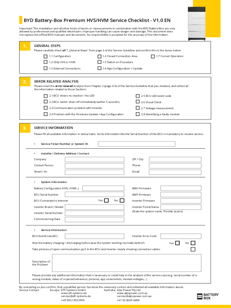 Obtener el gratis Byd Battery-box Premium Hvs / Hvm Guía De Servicio & Checklist